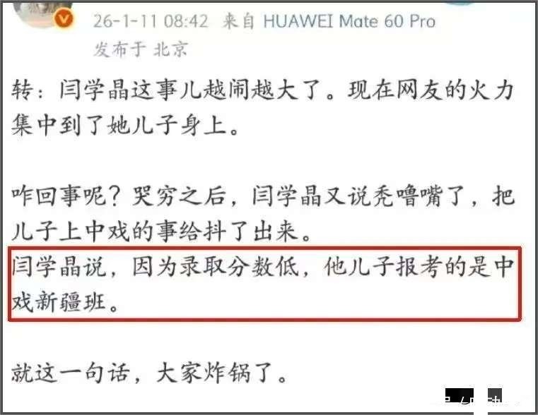 第一既然不是新疆班,为什么闫学晶要多次在直播间说儿子就读于新疆班呢?作为妈妈,她难道不清楚儿子就读于什么学校什么班嘛?